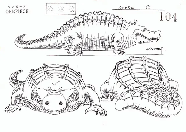 Top: Bananawani settei (reference sheet), Bottom: F-Wani settei (reference sheet)- the Bananawani, a crocodile with a banana shaped protrusion on top of its head. Or its speedy cousin, the F-wani.